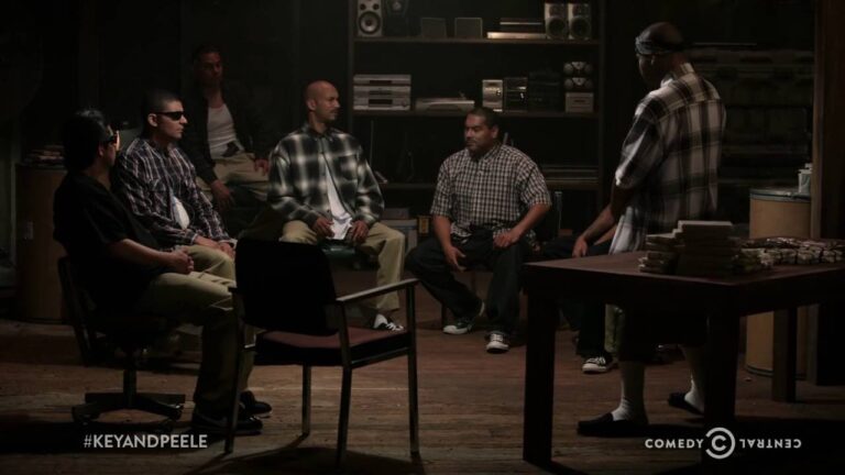 – OKAY, LET’S GET THIS THING GOING. EVERYBODY TAKE A SEAT. WE GOT TO HAVE MORE MEETINGS, HOMES, ‘CAUSE I’M TELLING YOU, MAN, WE GOT TO GET ORGANIZED. [sighs] [police sirens in the distance] CARLITO AIN’T GOT A SEAT, MAN. SOMEONE GET HIM A CHAIR. – NO, I’M COOL.