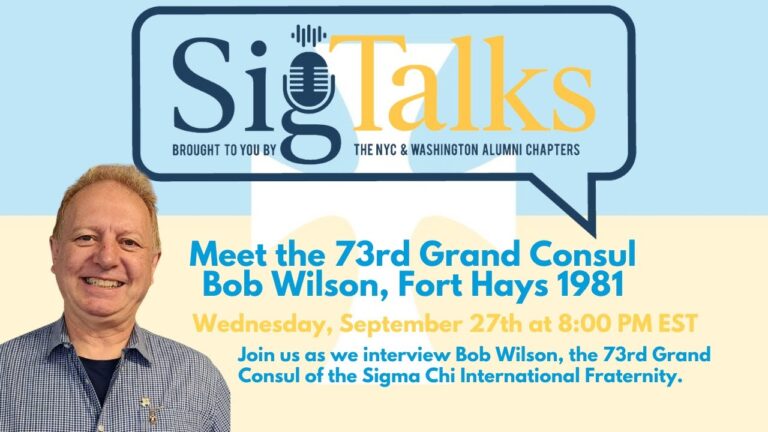 City alumni chapter and chairperson for Sig talks and David ashinoff president of the D.C alumni chapter joins me tonight as my co-modernator in an interview with the 73rd Grand Council of Sigma Chi Bob Wilson this evening we’re going to learn a great deal about Bob’s educational professional and Sigma Chi background