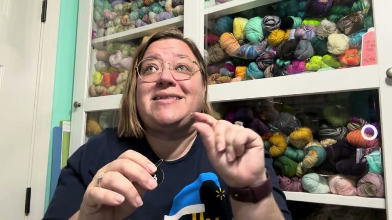 Be in the closet I decided to come upstairs to the yarn room to do uh the video tonight after watching last night’s video I looked a hot mess sitting in the corner of the couch all sloppy um so I was like okay not going to be