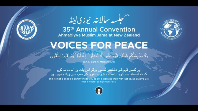 And the Earth and as for those who disbelieve in the science of Allah these it is who are the losers UA for for or For Allah I just like to request the children’s especially sitting right on the chairs up there please do not climb the chairs if anybody falls down gets hurt it will be big problem for us l or asalam alikum manam mam as me see M you M g to key zind he Joy m a [Applause] See Y key is [Applause] be girl key Say [Applause] Mal Isam Jes yeah [Applause] he me CH The but [Applause] Har sh is say the The is oh mer [Applause] see Mera is see New Zealand now I request the respected National president to come and deliver his opening speech mukar bash KH assalam Alayah Allah my dear members friends families of the hamedia Muslim jamaat New Zealand it is my greatest honor and
