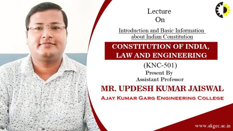 Jin to all of you IES Kumar jwal working as an assistant and professor in Department of computer science and engineering aay Kumar gar engineering college gaziabad today I am going to presenting a lecture on the topic introduction and basic information about Indian constitution this topic is related to