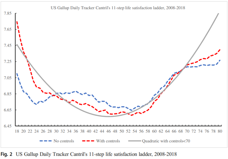 Jonathan Rauch has written extensively on this topic and claims a midlife slump is normal:
