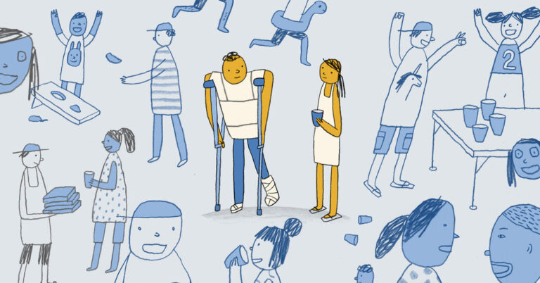 When the pain is unbearable and my guilt and self–pity return, Emma runs me ice baths. She strokes my hair and kisses my face while I lie on the couch after a day of sitting. She “camps” with me in our living room, where the stiff floor provides more back support than a bed. She tries to ease the pain with an amateur massage, or at least wields the massage gun with gusto. She moves our couches and books and picks up whatever I drop. She tells me to do my physical therapy and to exercise. She reminds me about everything I love and can still do.