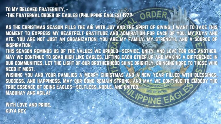 Maligayang Pasko Kuya, Ate at Bunso – Greetings From The fraternal Order Of Eagles