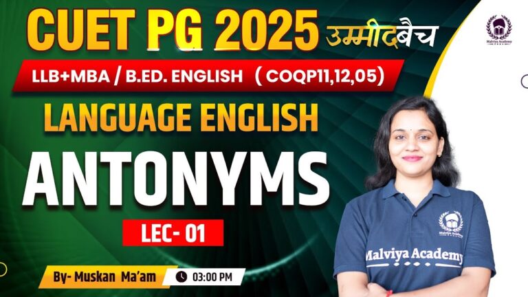 You are at:Home » CUET PG 2025 LLB (COQP11) , MBA , B.Ed. | Language English | Antonyms Lec 01 | Muskan Ma’am