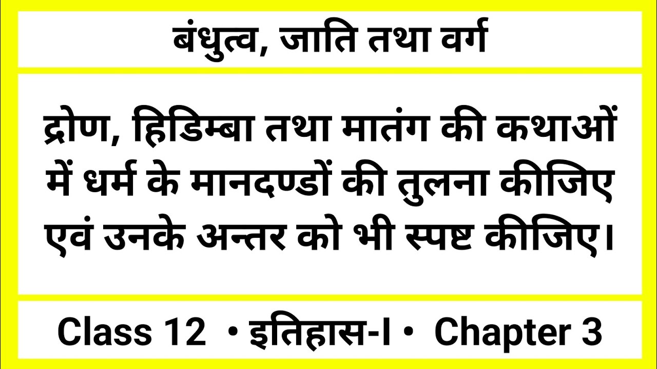 द्रोण हिडिम्बा तथा मातंग की कथाओं में धर्म के मानदण्डों की तुलना कीजिए | बंधुत्व जाति तथा वर्ग