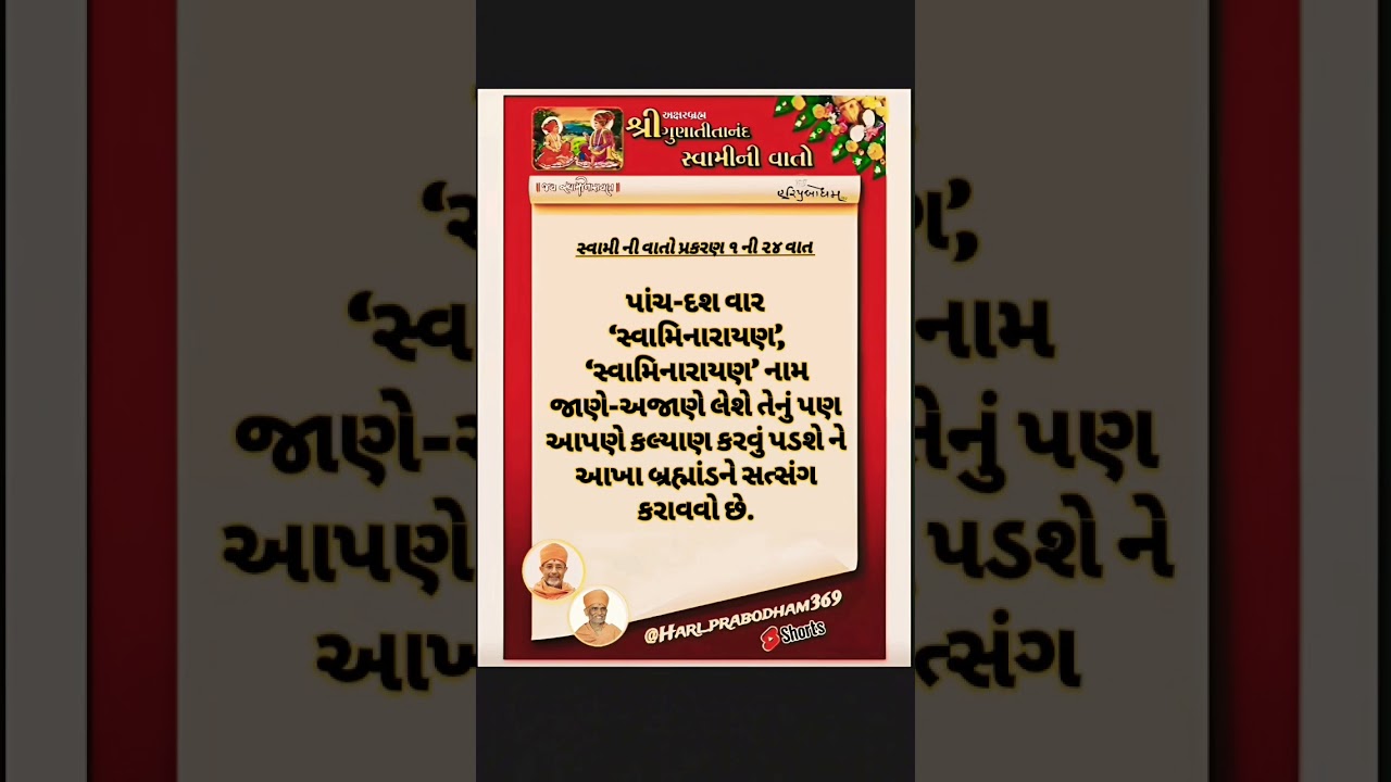 You are at:Home » સ્વામી ની વાતો પ્ર.૧ ની ૨૪ વાત ॥ Swami Ni Vato P.1 ni 24 vaat #swaminivato #hariprabodham #shorts