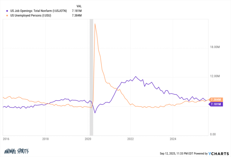 This is the first time this has happened since the pandemic. When the labor market was running hot in 2022, there were millions of job openings over and above the unemployed population.