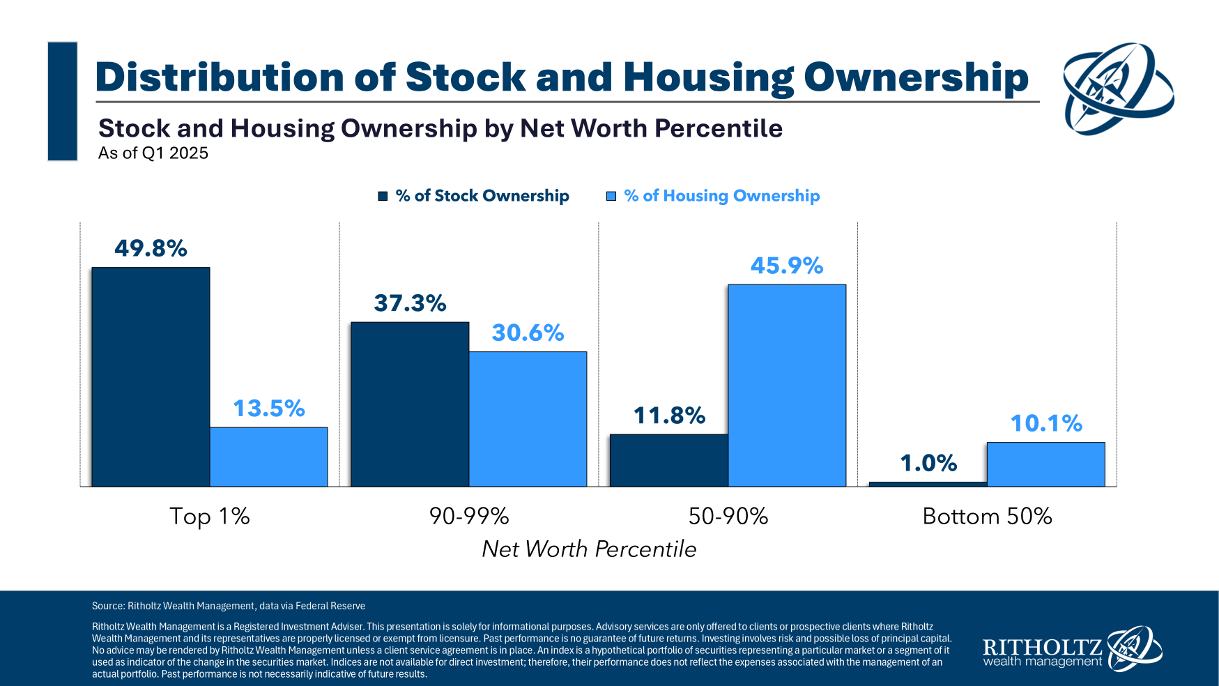 The bottom 90% owns 13% of the stock market and 56% of the housing market.