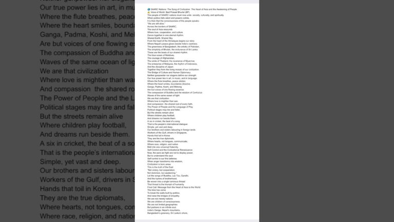 You are at:Home » 🌏SAARC Nations Unite The Song of Civilization & the Awakening of People #saarcVoiceofAsia including#