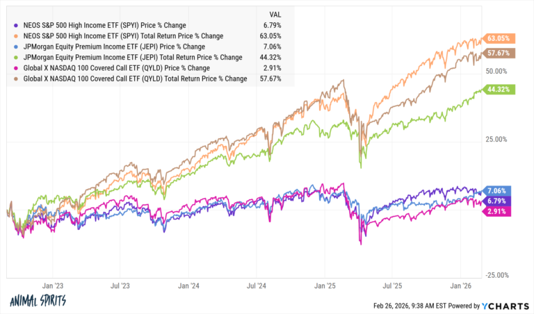 The yield on a covered call strategy isn’t the Holy Grail many assume it is. You’re not necessarily defeating the 4% rule just because the yield is so high. You need to consider total return, not just the income component.